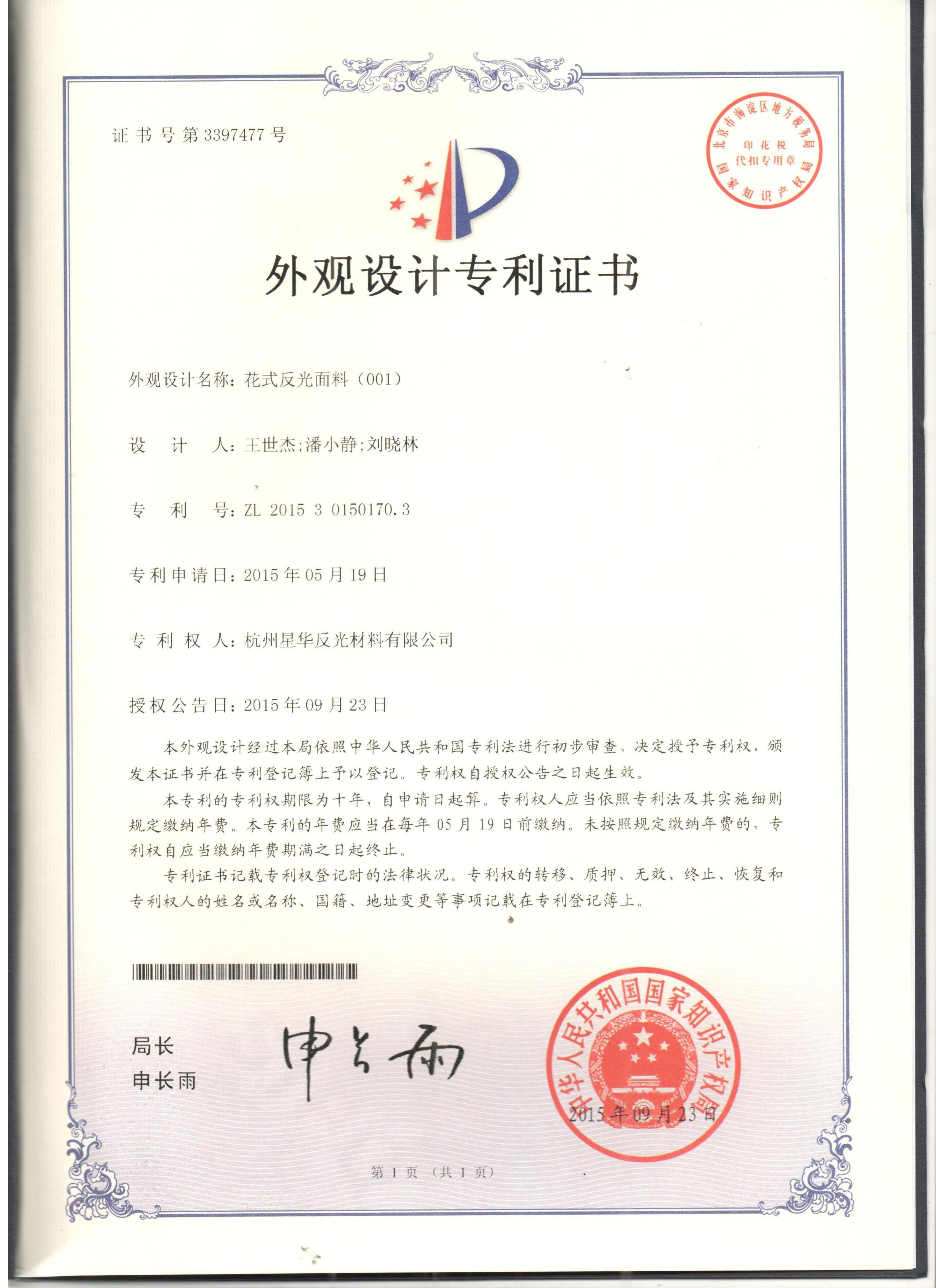 花式乐鱼注册(中国)官方网站面料001-实用新型证书(十字星图案)
